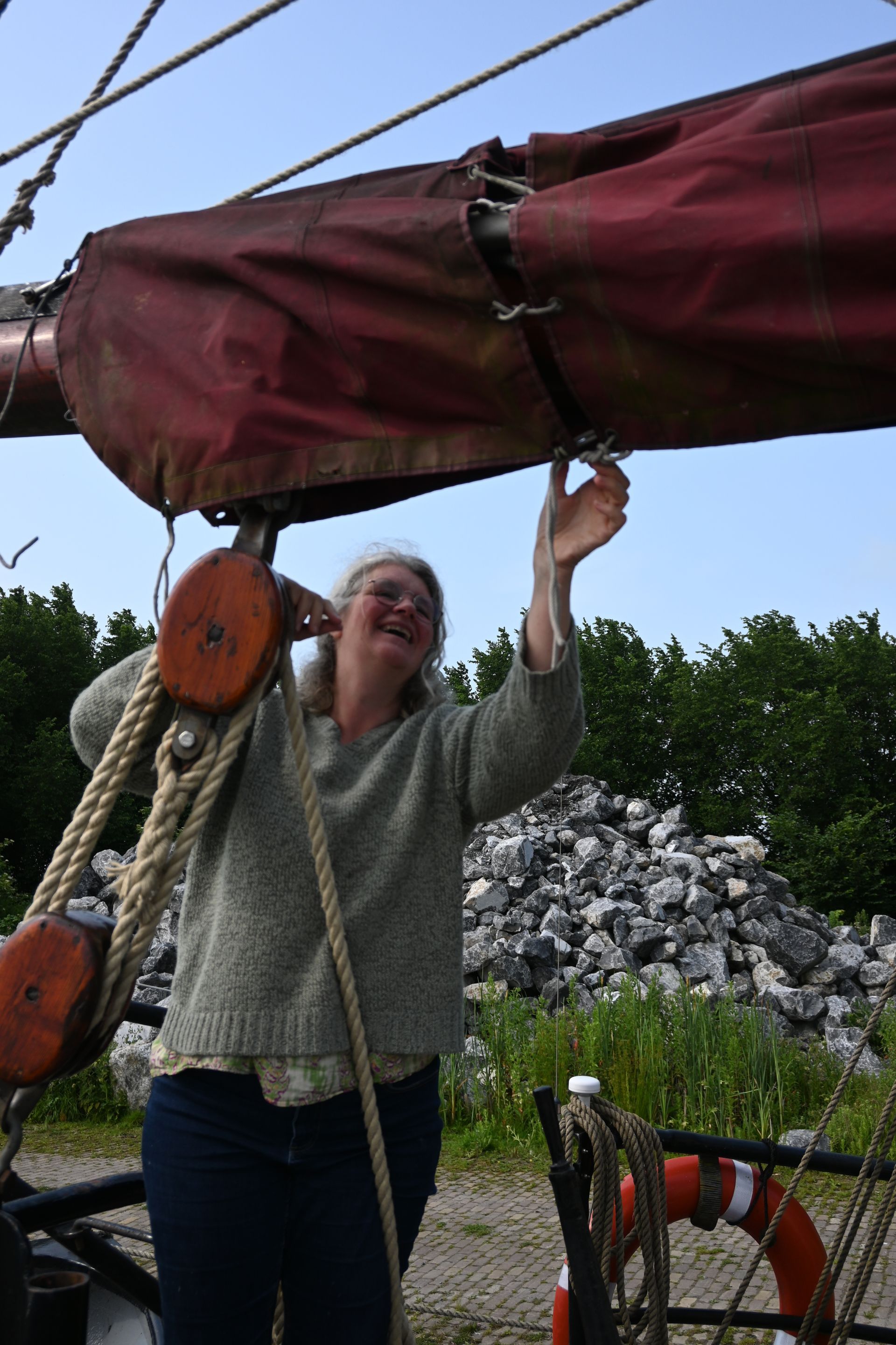 Samen zeilen en aan touwen sjorren, 's avonds samen koken en een klein alcoholvrij biertje bij een kampvuur.