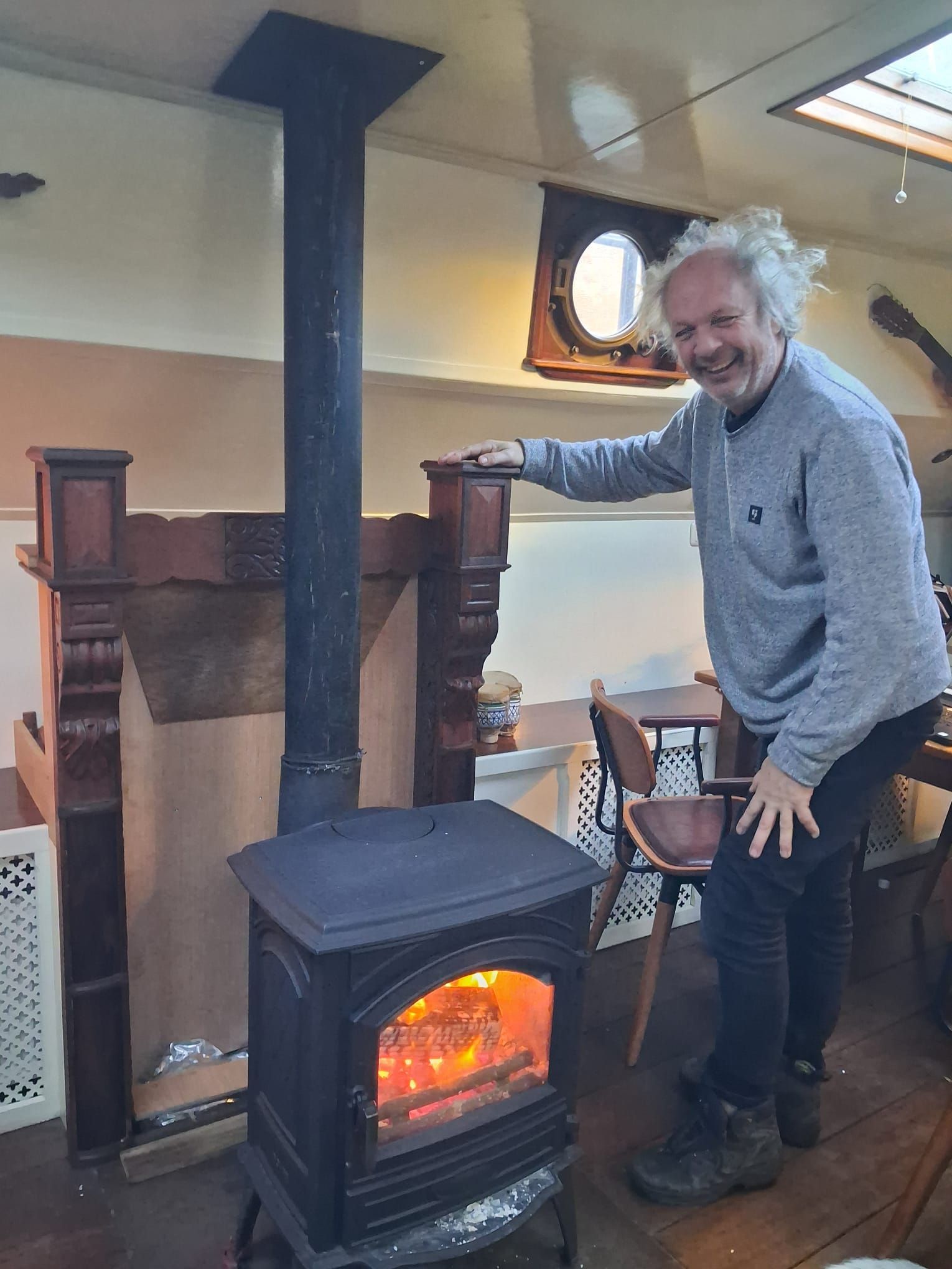 Joost is een nieuwe schouw voor de kachel aan het maken. Het hout ligt al een tijdje in het vooronder en dat ruimt ook weer lekker op!